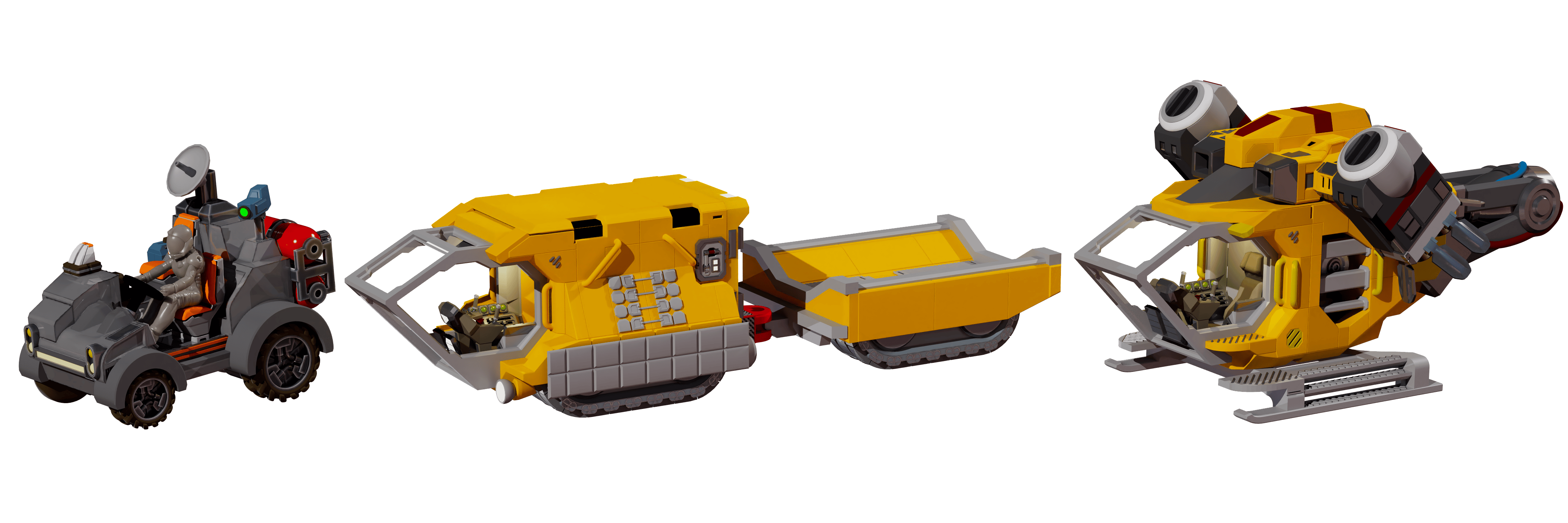 And as add-ons we had means of planetary transportation like these small survey vehicles, including a rover, crawler and hopper.
